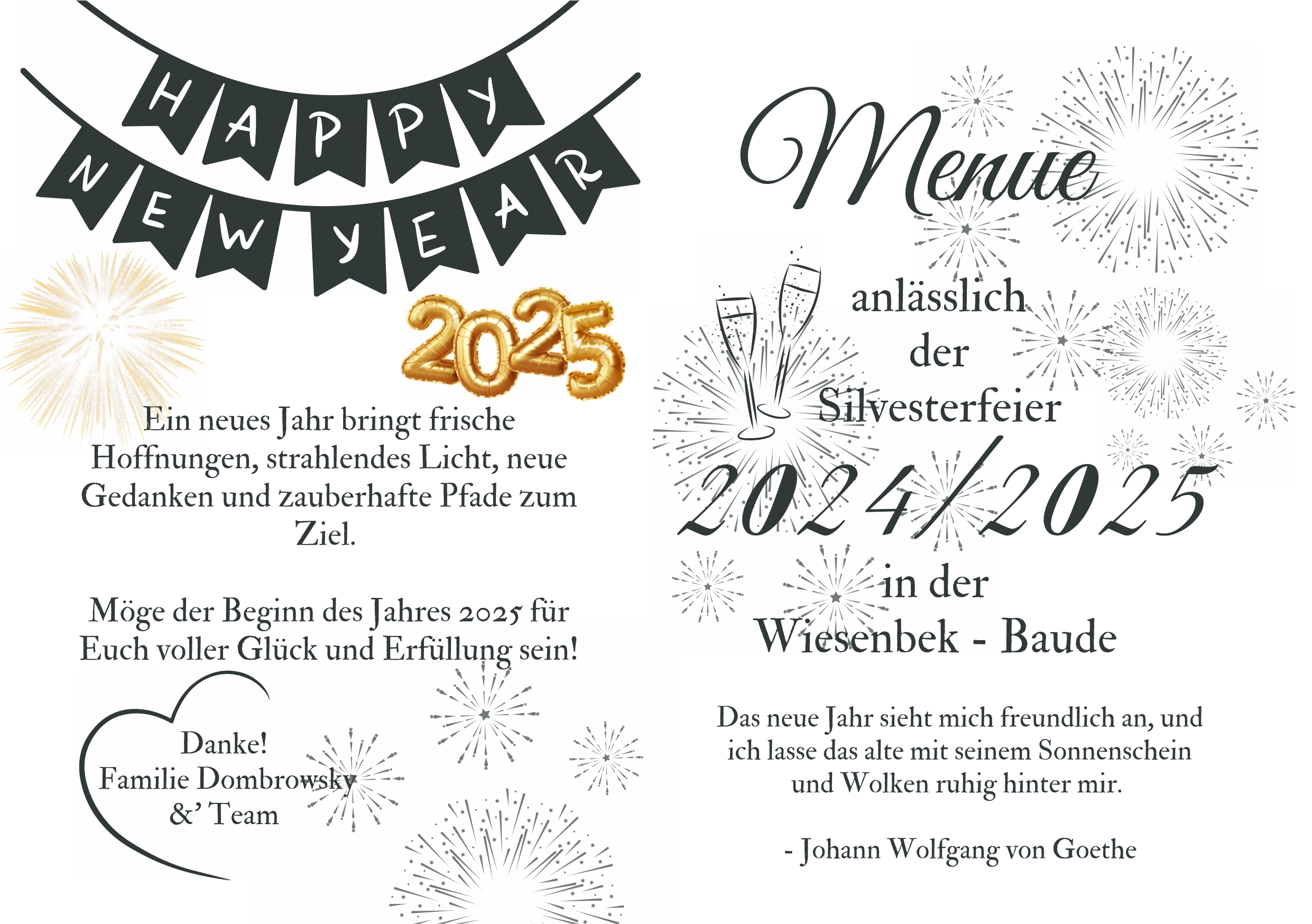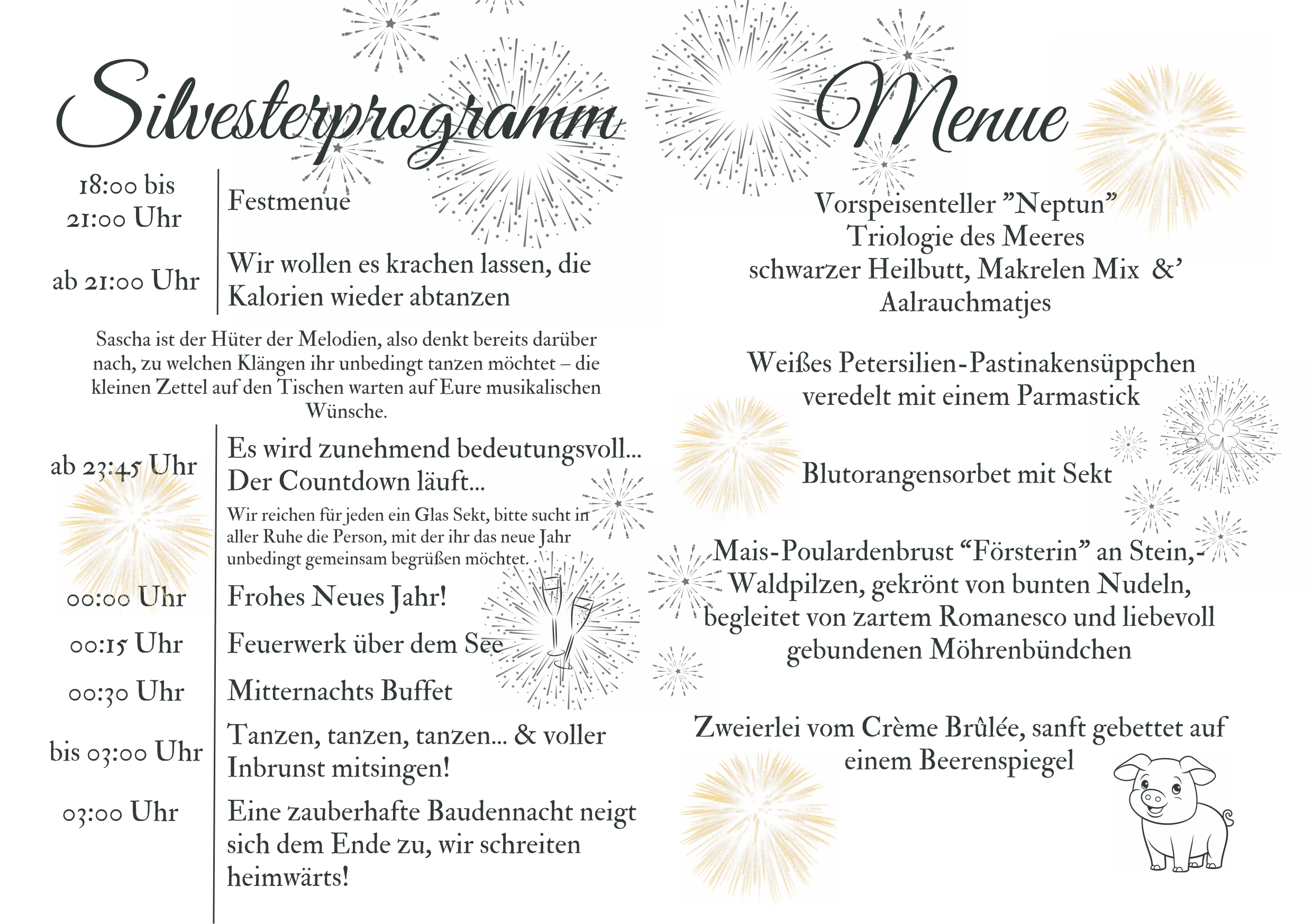 Dies war unser Silvesterprogramm und Menue 2024/25